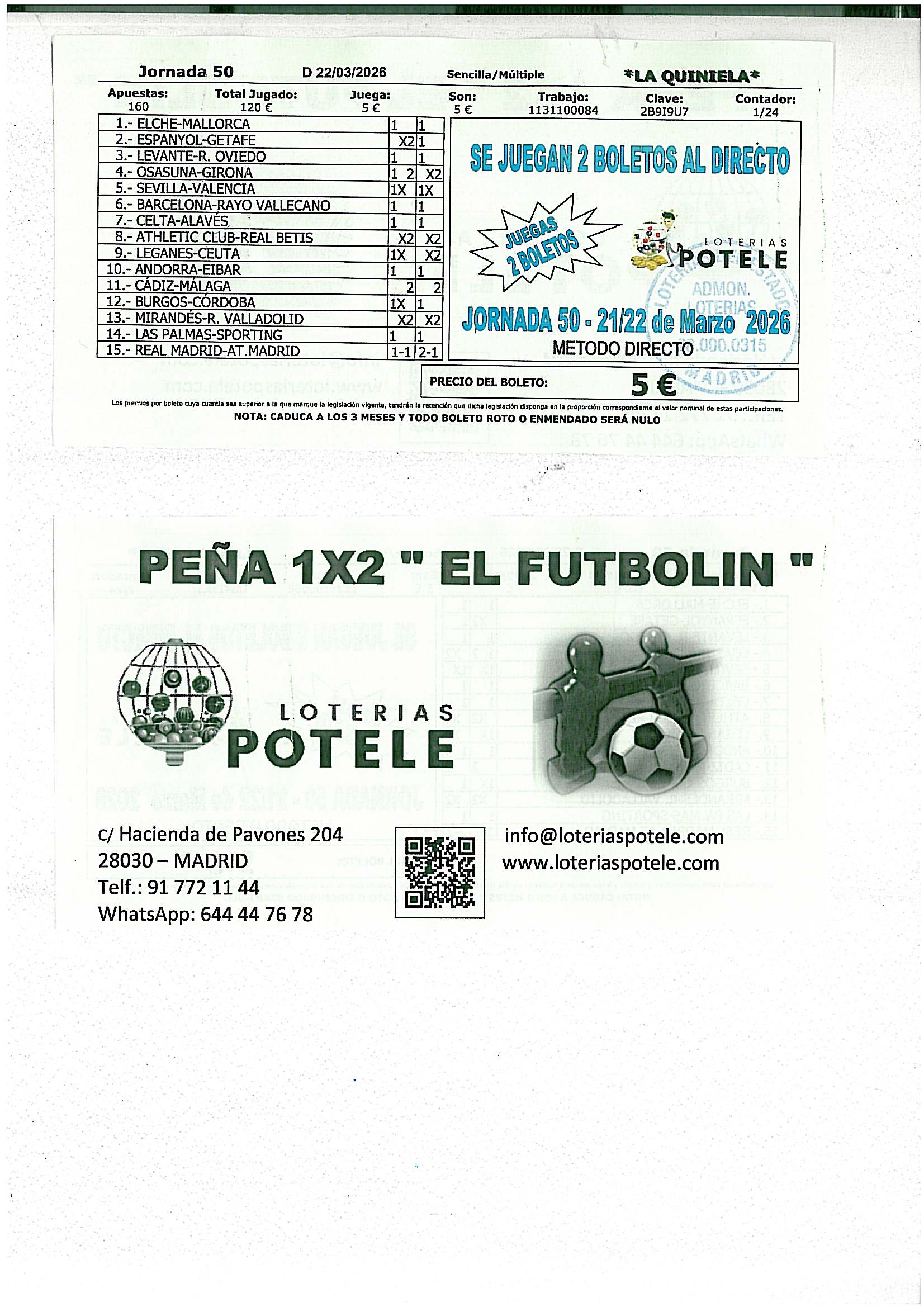 Peña 1x2 Jornada 50 2025-26